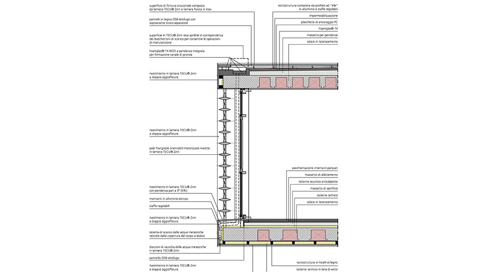 stralcio sezione facciata interna e particolare verde pensile